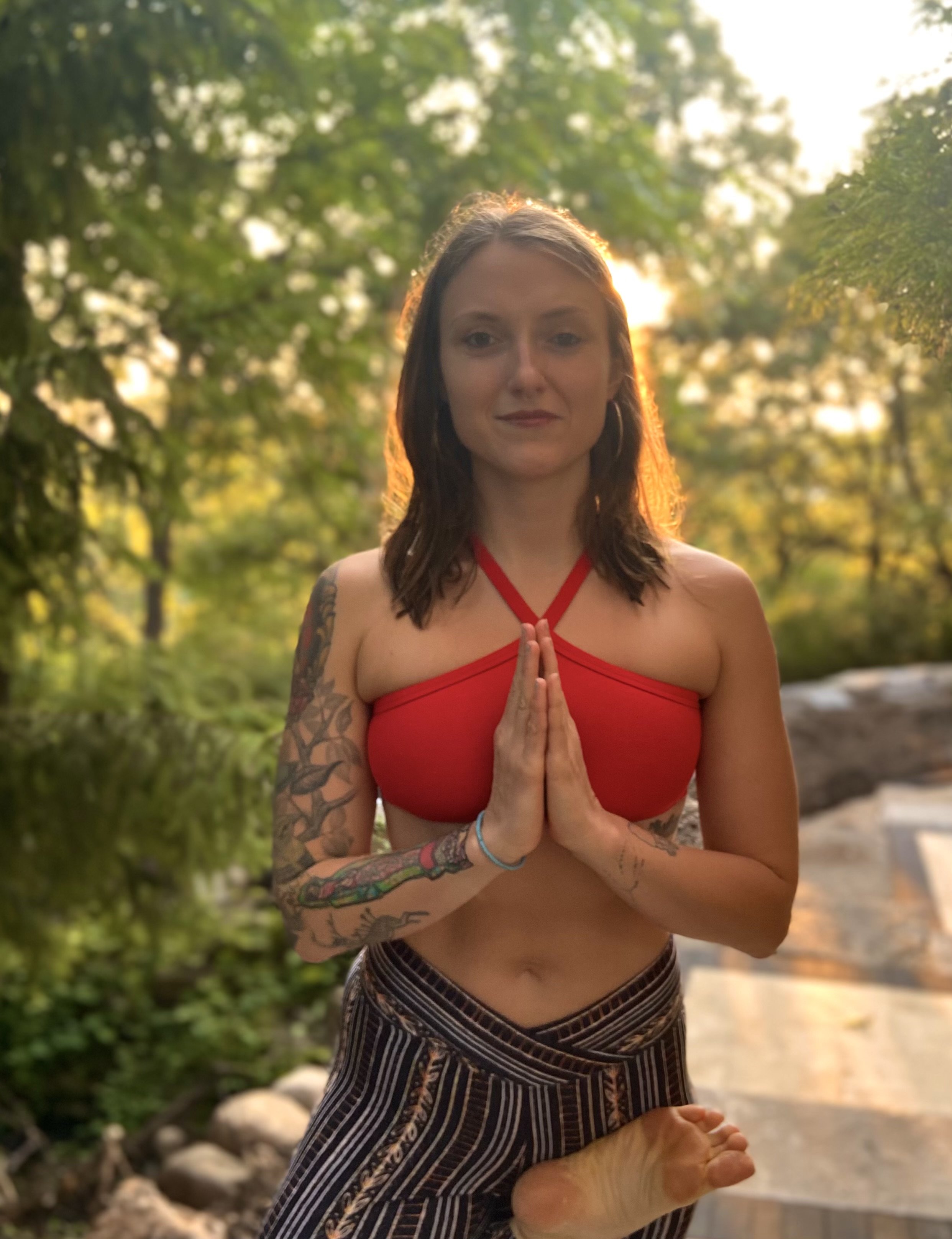 She began practicing yoga at age eight in the Iyengar tradition and went on to complete her RYT-200 with Yoga to the People in New York City (2012), Bikram Yoga Teacher Training under Bikram Choudhury in Acapulco, Mexico (2017), and Integrated Hatha certification with Brandy Lyn and the Ivy Standard Yoga Institute in Utah (2021). Jana has studied with renowned teachers around the world, and her training and practice have carried her across studios internationally — from Berlin to New York to Arizona and back home to the Midwest — always rooted in the traditional lineages that first inspired her.